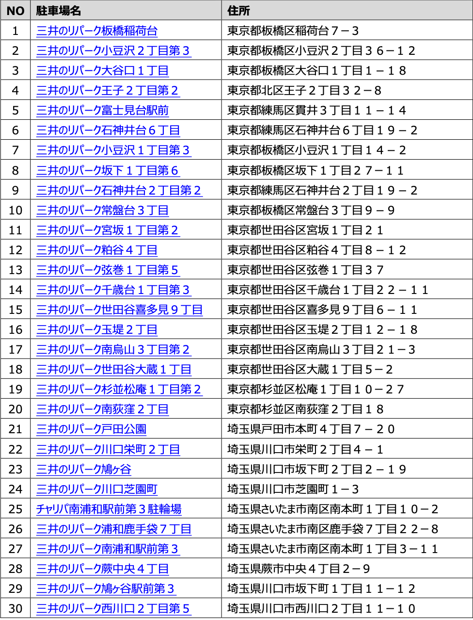 ■実施場所:東京都内および埼玉県における「三井のリパーク」の敷地内
