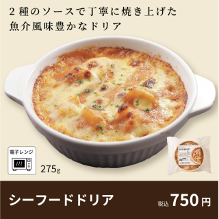 バターライスの上に海老、小柱をのせて濃厚なアメリケーヌとモルネソースをかけ焼き上げたシーフードドリアです。