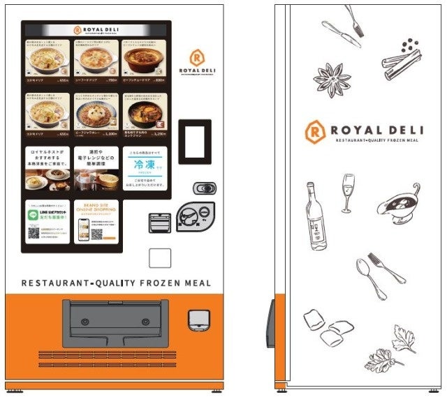第一弾として東京都内および埼玉県にある「三井のリパーク」30カ所の敷地内にそれぞれ1台ずつ、合わせて30台の冷凍自動販売機を設置します。これによりロイヤルデリの商品の無人販売が可能となり、人気商品・コスモドリアをはじめとした「ロイヤルデリ」の冷凍食品5品が、24時間いつでもご購入いただけるようになります。