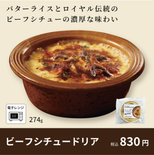 バターソテーした具材を入れて炊き上げたこだわりのバターライスに、じっくり煮込んだビーフシチューとモルネソースをかけて焼き上げ、濃厚でコクのある味わいに仕上げました。