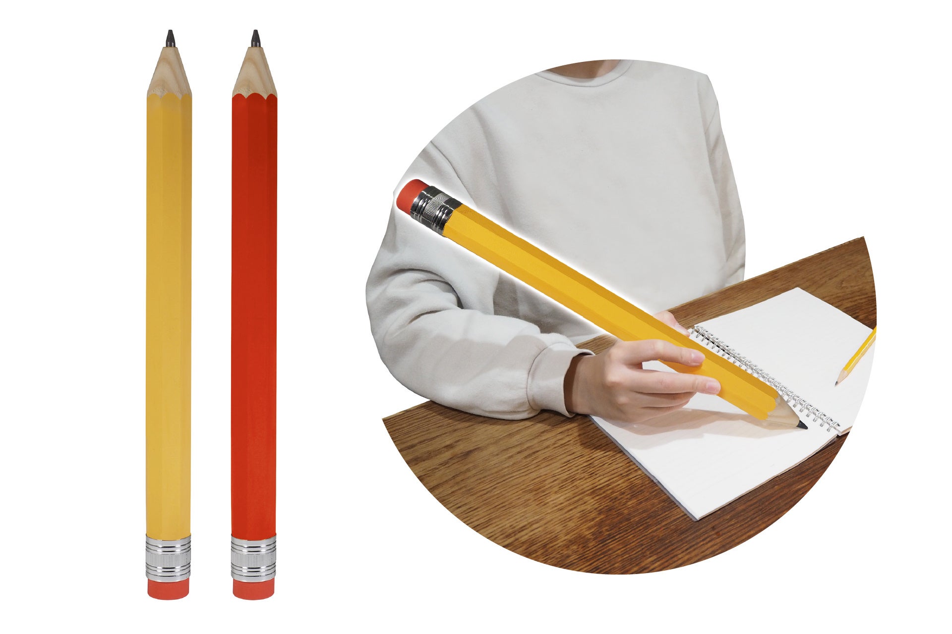 特徴:どでかい!全長37cmのえんぴつが登場!見た目のインパクトだけではなく、しっかり書ける&背面の消しゴムも使用できます。おもむろに取り出して家族や友達をおどろかせてみよう。本体カラーは「イエロー・グリーン・レッド」の3種類。保護キャップ付きです。