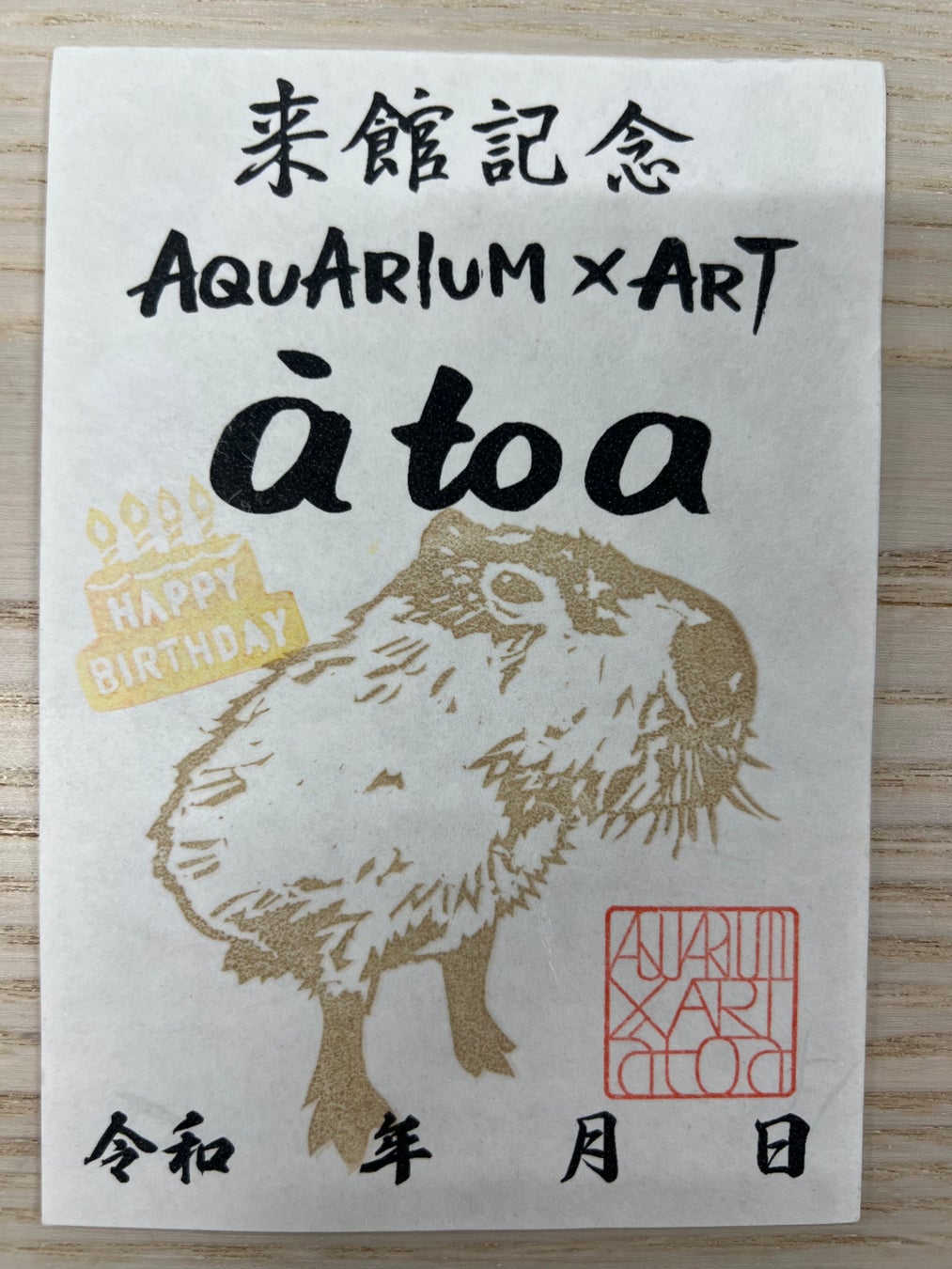 アトアご来場記念に大人気の「魚朱印」に、期間限定で「カピバラ」デザインが初登場!スタンプはアトアで飼育しているカピバラをモデルにし、スタッフが手作りしました。この期間にしか手に入らないHAPPY BIRTHDAYバージョンです!