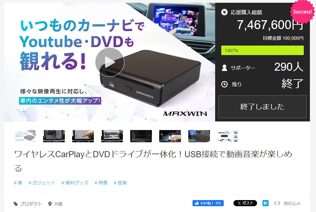 Makuakeで700万円以上売り上げ達成率7467%で大成功したMAXWINのAIBOXinDVDプレーヤーが一般販売を開始しました!