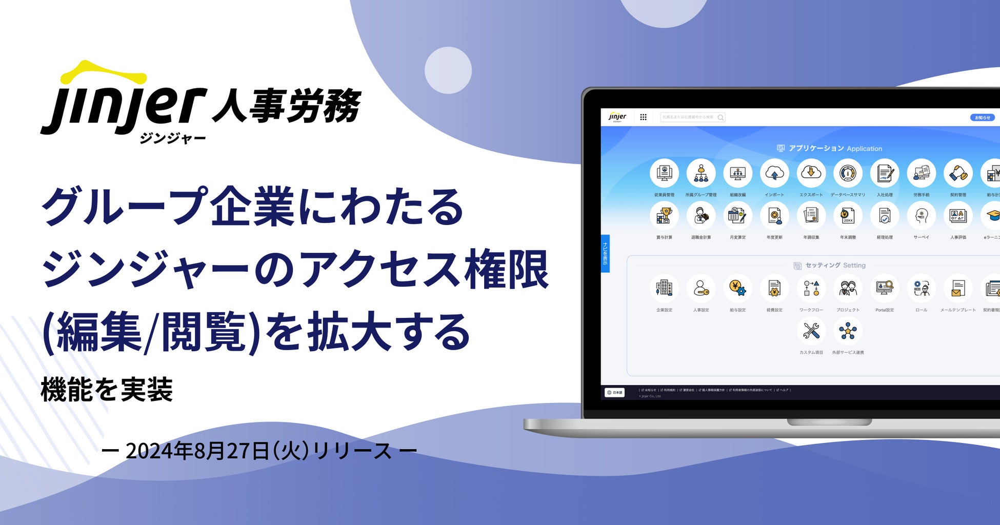 クラウド型人事労務システム「ジンジャー」を提供しているjinjer株式会社(本社:東京都新宿区、代表取締役社長:桑内 孝志)は、「ジンジャー人事労務」で、グループ企業にわたる「ジンジャー」のアクセス権限を拡大することで、よりセキュリティを担保した「ジンジャー」の設定が行える機能を、8月27日(火)に実装したことをお知らせします。
