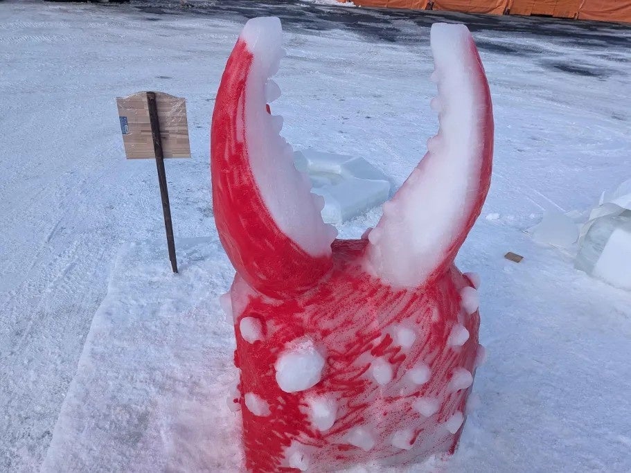 常識を打ち破る「赤いカニ爪」氷像の誕生