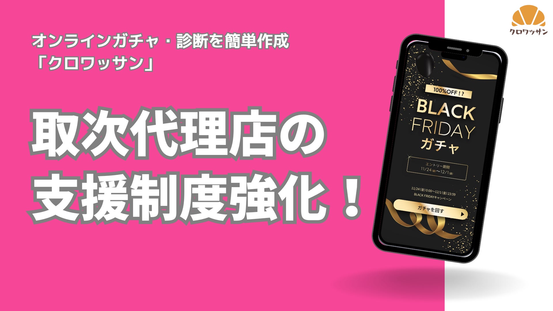 オンラインガチャ・診断アプリが誰でも簡単に作れる「クロワッサン」は2026年度までに1,000社の導入を目指しております。