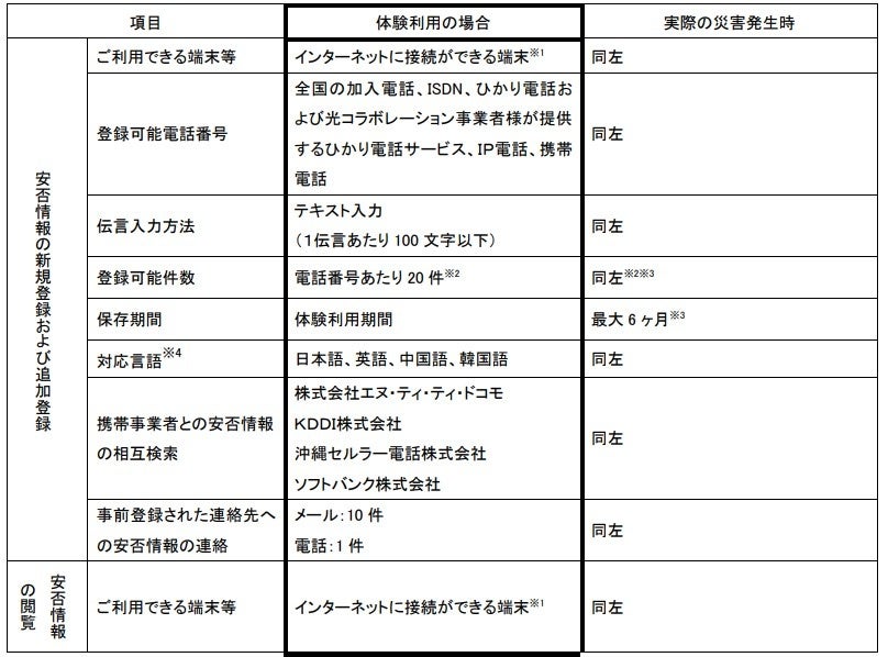 毎月1日および15日”※4“正月三が日”※5“防災とボランティア週間”※6にも、「災害用伝言ダイヤル(171)」および「災害用伝言板(web171)」の体験期間を設定しています。
