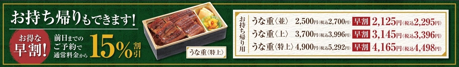 しかも、8月7日(水)までは「うなぎ祭」と題して、前日までのご予約で早割15%OFFでお得にご利用頂けます!!