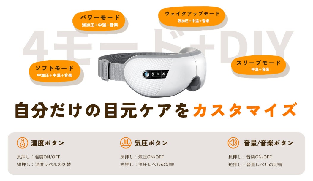Anyceeは「ソフト」「パワフル」「ウェイクアップ」「スリープ」の4つのモードに加え、エア圧・温度・音量を自在に調整できるDIYモードを搭載。