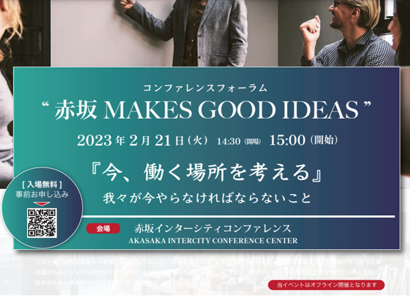コンファレンスフォーラム“赤坂 MAKES GOOD IDEAS” 『今、働く場所を考える』我々が今やらなければならないこと