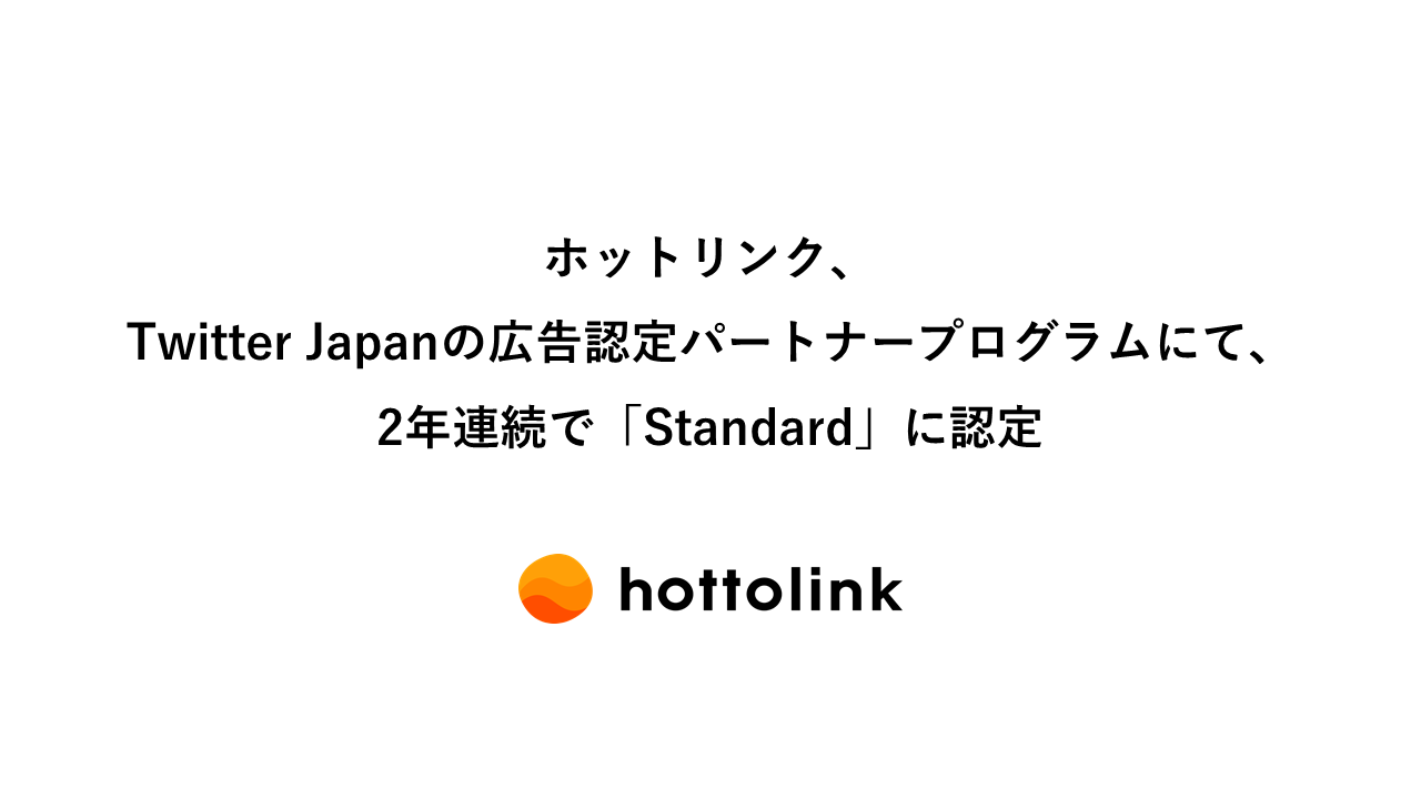 SNSマーケティング支援サービスを提供する株式会社ホットリンク(本社:東京都千代田区、証券コード:3680、代表取締役グループCEO:内山幸樹、以下ホットリンク)は、Twitter Japan株式会社(以下、Twitter社)が特に優れた販売実績、運用経験のあるパートナーを特別に認定するTwitter広告認定パートナープログラムにて、2年連続で「Standard」に認定されたことをお知らせいたします。