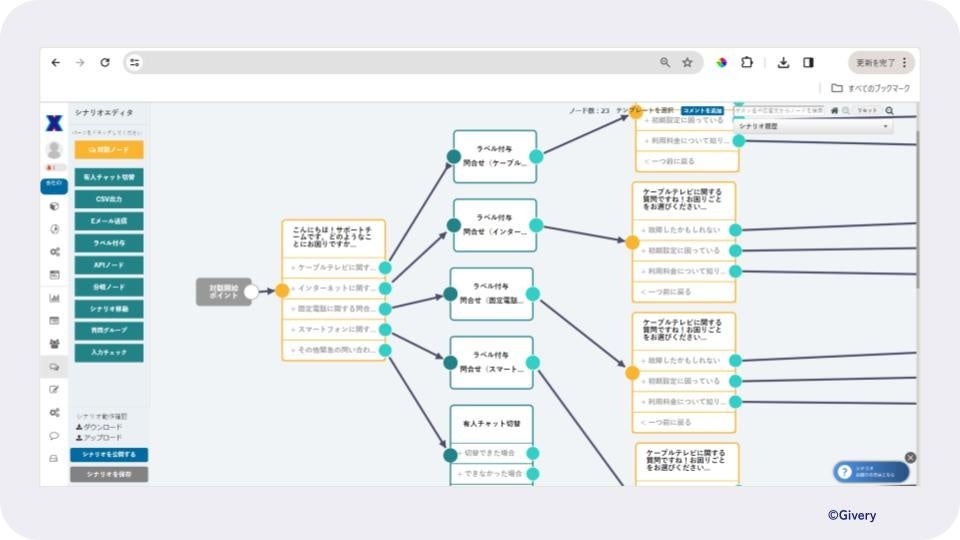 「ケーブルテレビ」「インターネット」「固定電話」「スマートフォン」の各サービスに対するお客様からの問い合わせについて、あらかじめQ&Aのシナリオを作成し、チャットボットによる問い合わせ対応の自動化をすぐに構築することが可能です。