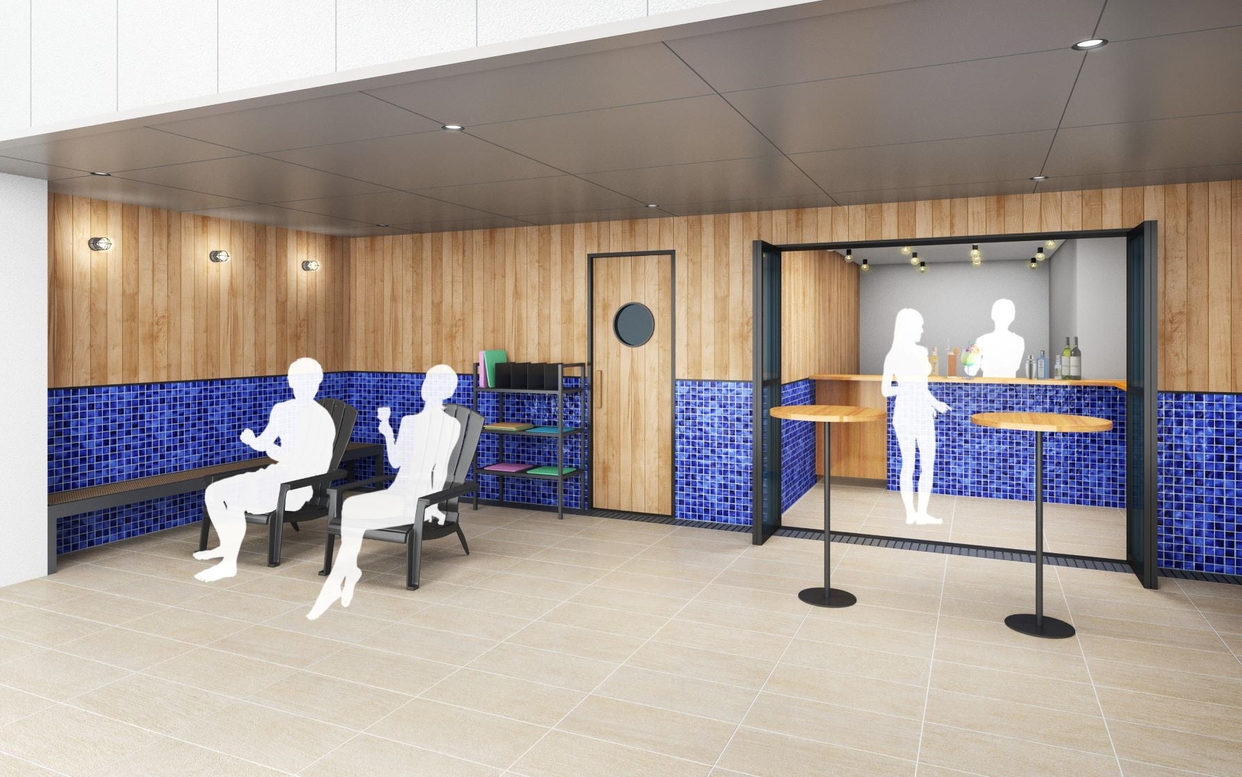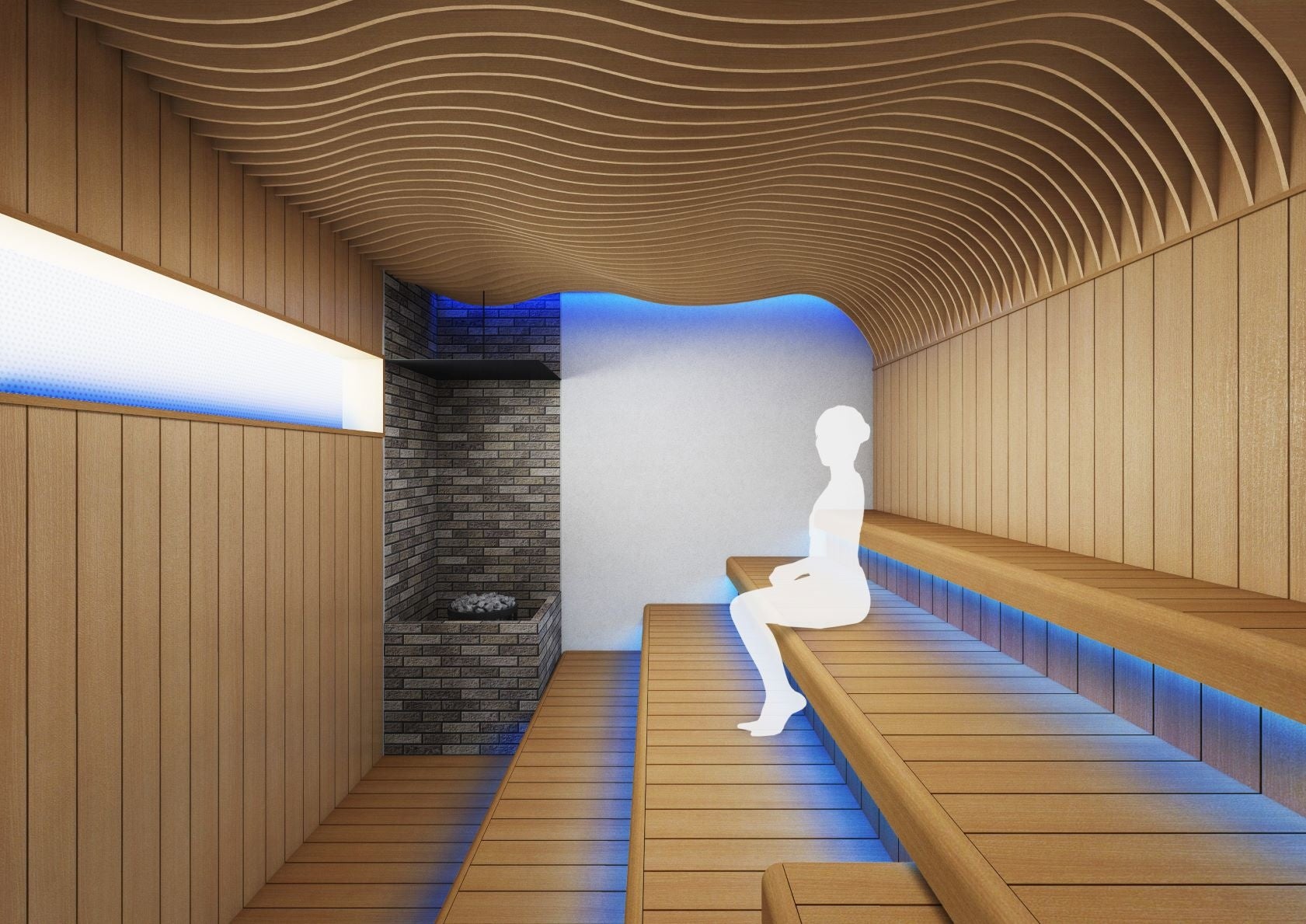 ブルーの照明に囲まれた幻想的な空間で、まるで海底へ潜っていくかのような新感覚のサウナです。ヒーリングサウンドのBGMを聞きながら、深い「ととのい」の世界を体験してください。