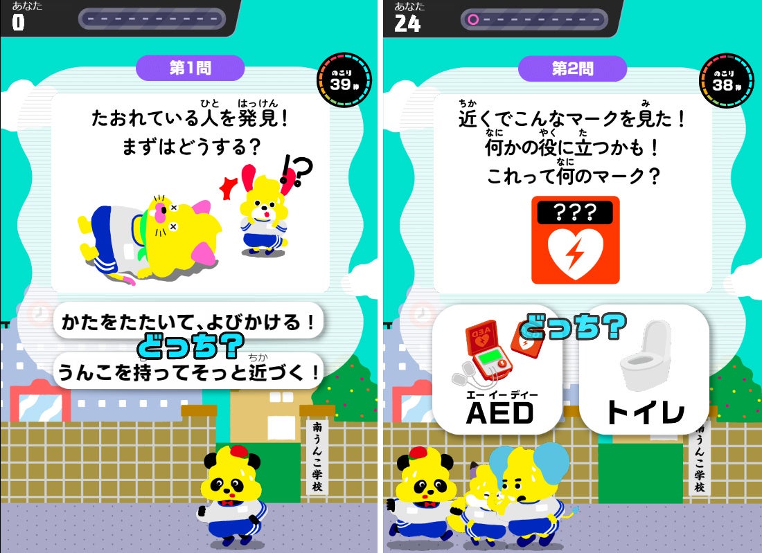 “うんこ”を通して「AEDを使うことの大切さ」を学ぶ!?公益財団法人日本AED財団とうんこドリルがコラボしたオンラインゲーム「うんこ救命ドリル(AED編)」。