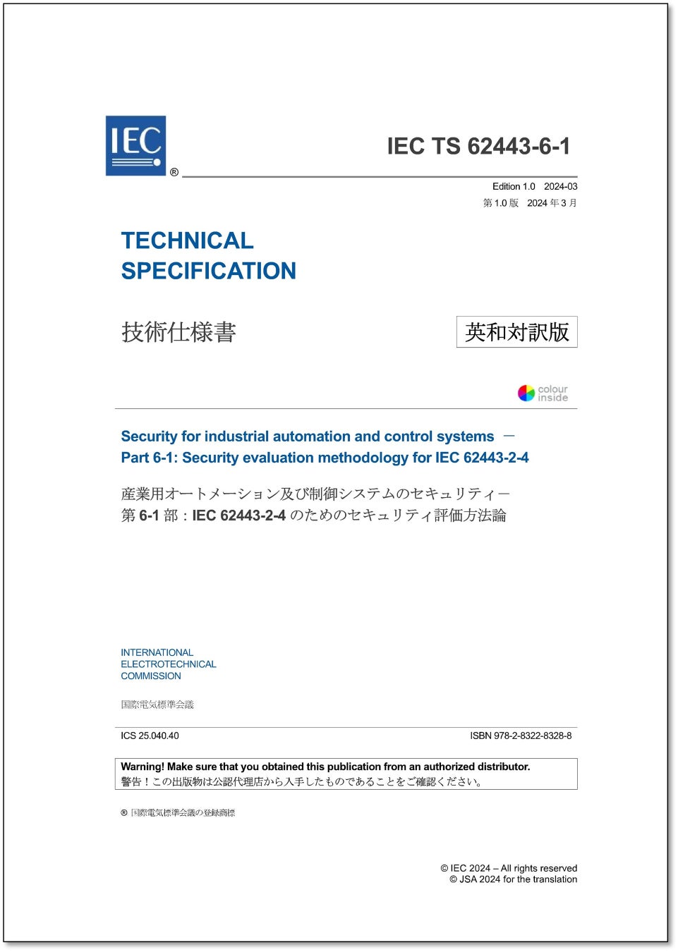 ● IEC/TS 62443-6-1 Ed. 1.0:2024 (en)「産業用オートメーション及び制御システムのセキュリティ-第6-1部:IEC 62443-2-4のためのセキュリティ評価方法論」