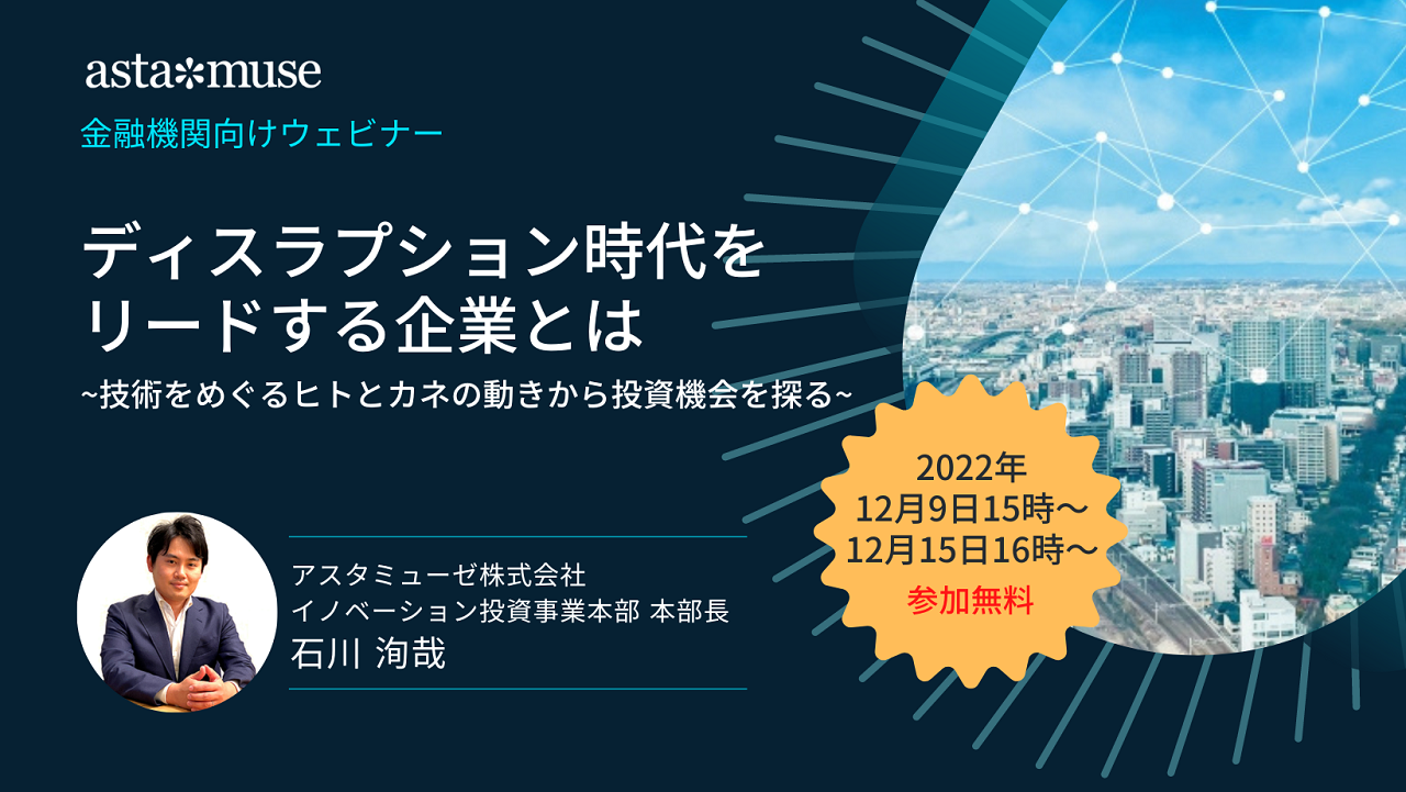 金融機関向け無料ウェビナー「ディスラプション時代をリードする企業とは~技術をめぐるヒトとカネの動きから投資機会を探る~」開催!12月9日15時~/12月15日16時~