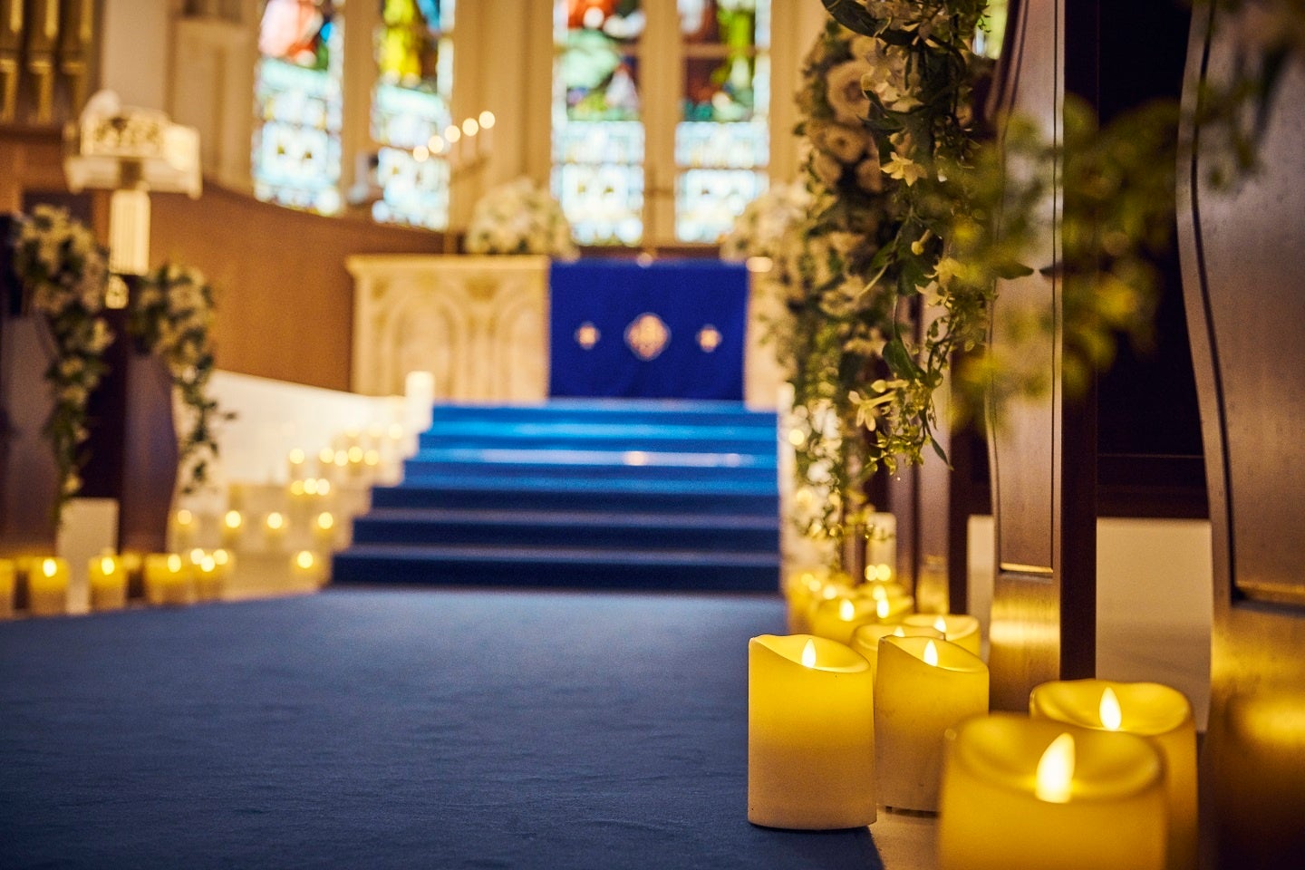 昼はステンドグラス輝く大聖堂、夜は光ゆらめくキャンドルチャペル