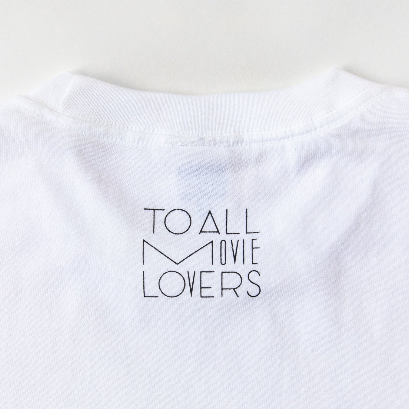 バックには、全ての映画好きへ、というメッセージを込めたロゴ「TO ALL MOVIE LOVERS」をプリントしています。(ロゴデザイン:大島依堤亜)