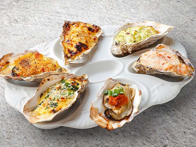 焼き牡蠣全種盛り合わせ 2,600円(税込2,860円)