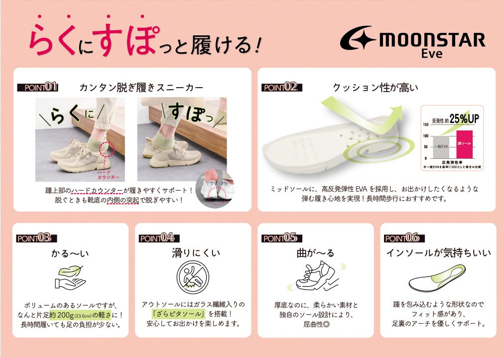 ■ムーンスターEve(イブ)「らくにすぽっと履ける靴」商品ラインナップ