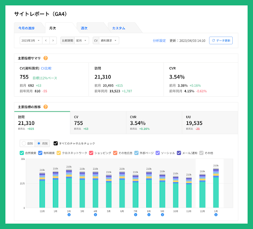 これまでAIアナリストの「サイトレポート」では、UAでのデータ計測のみに対応していましたが、この度、GA4での計測に対応した「GA4サイトレポート」を新機能としてリリースしました。