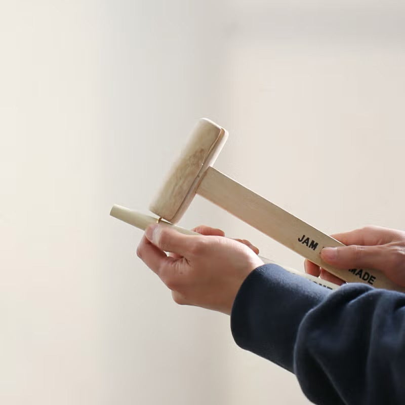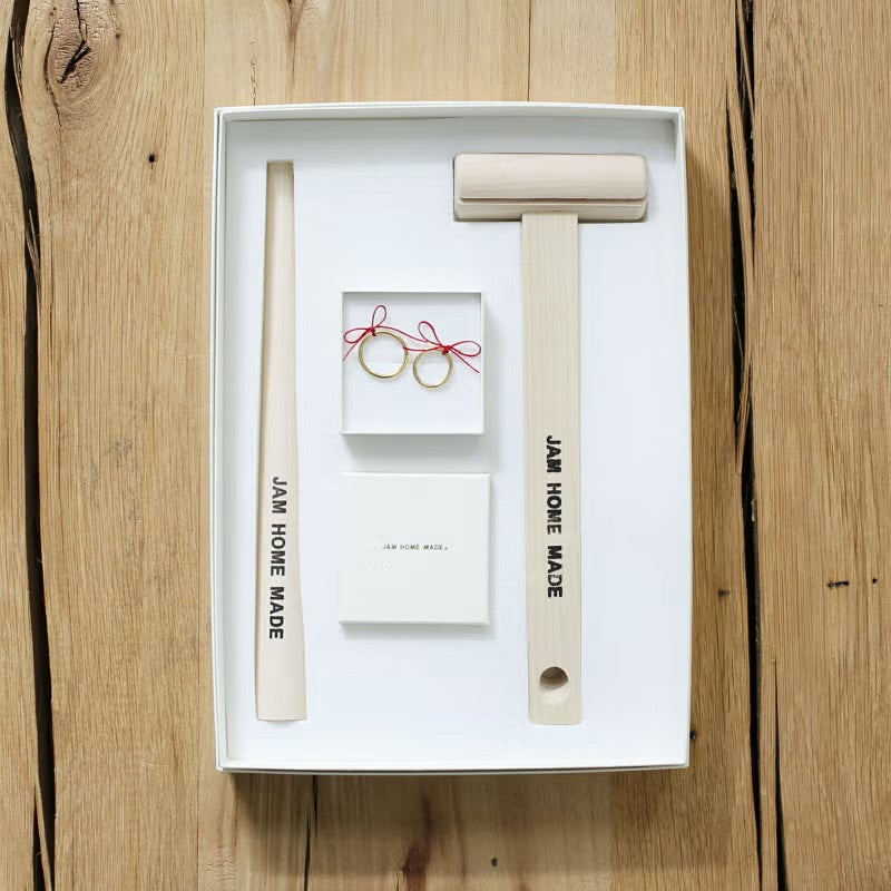 2016年にグッドデザイン賞を受賞した『名もなき指輪®』とは、時を経て結婚指輪に進化する新発想の指輪です。楕円にゆがんだリングを芯棒に通し、木槌でたたいて真円に仕立て上げる手づくりの指輪。サイズ対応が可能なリングセットと、指のサイズを測るリングゲージなど製作に必要な道具が一緒にパッケージングされているので、いつでもどこでも誰とでも指輪づくりが体験できます。そして自分たちで作った“名もなき指輪”を原型として型にとり、プラチナやゴールドで造りかえ、結婚指輪として生まれ変わらせることができます。作るときについた叩き跡や日々の生活の中で纏った傷跡、その思い出ごと型どり、それがそのまま刻まれた“世界にひとつだけの指輪”に。まったく新しい価値観の、次世代型指輪です。