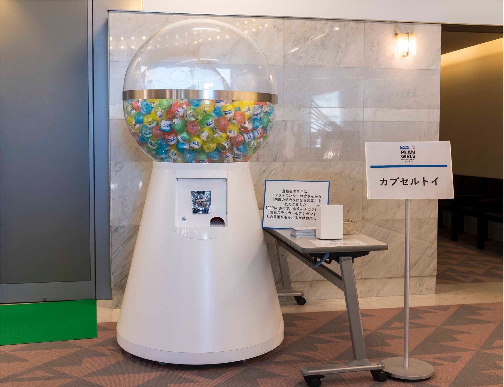 イベントのゲストから寄せられた「未来のチカラになる言葉」をあしらったステッカーが入手できるカプセルトイを販売。未来へのヒントに繋がる、前向きになれるといった“言葉との出会い”をお楽しみいただきました。カプセルトイの売上は全額、プランを通じて女の子たちや子どもたちを支援する活動に役立てられます。