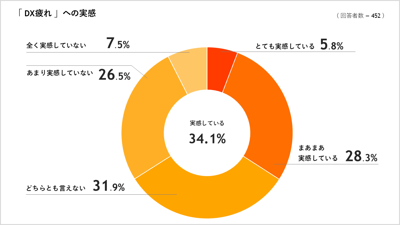 「DX疲れ」を感じている人は34.1%、その理由は「複数のシステムを使い分けることに難しさを感じている」「システム同士が連携していないことによる不便さを感じている」など