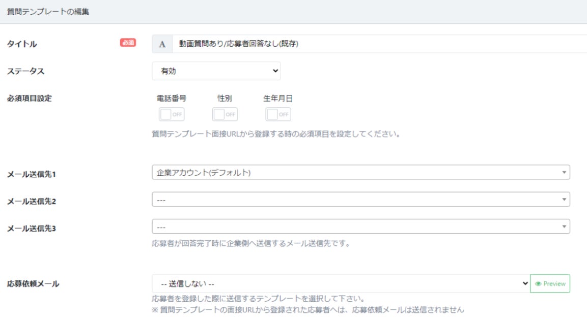 応募者の面接回答完了後に企業側へ送信される完了通知メールの宛先はこれまで1件のみとなっておりました。複数の担当者が採用担当している場合でも各担当者宛てに個別でメールを受け取り対応出来るようにしたいとのお声を頂くことがありましたので最大3件までアドレスを設定出来るように機能追加をいたしました。