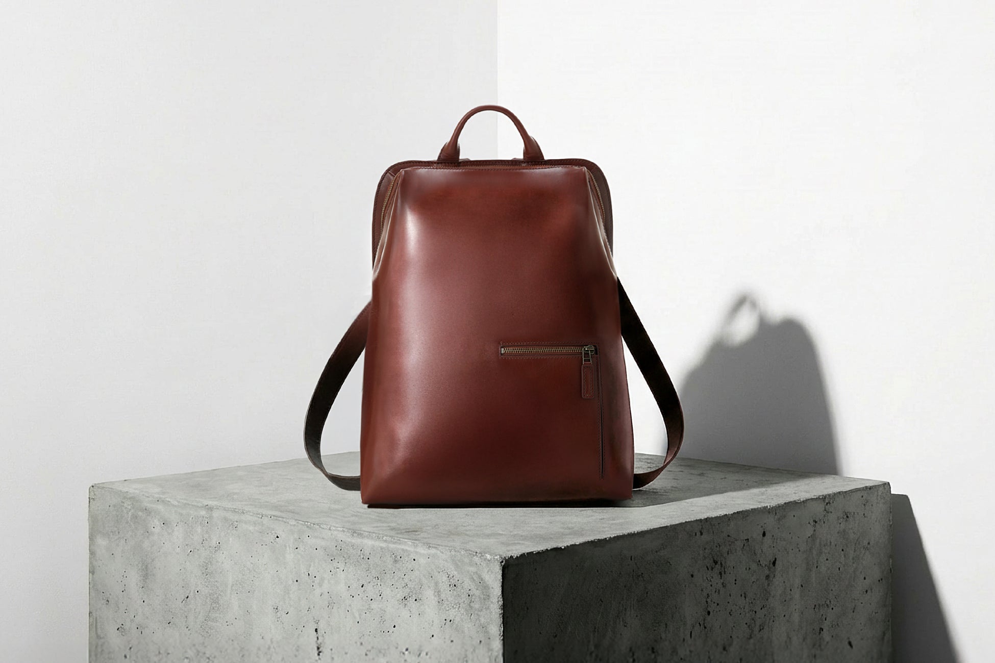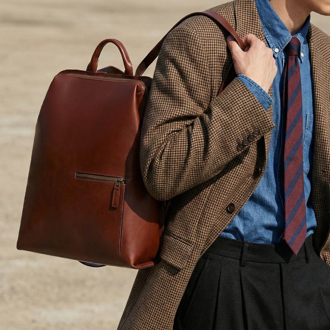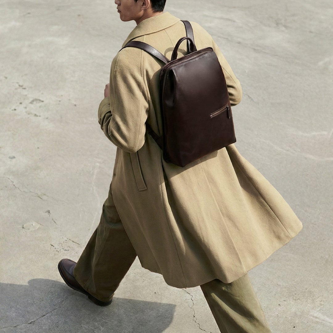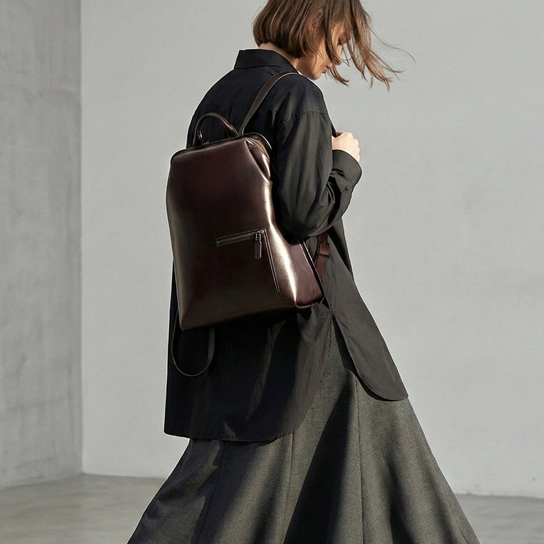 背中にすっきりと収まる「三角形」のバックパックが、日々のスタイリングに新しい演出を