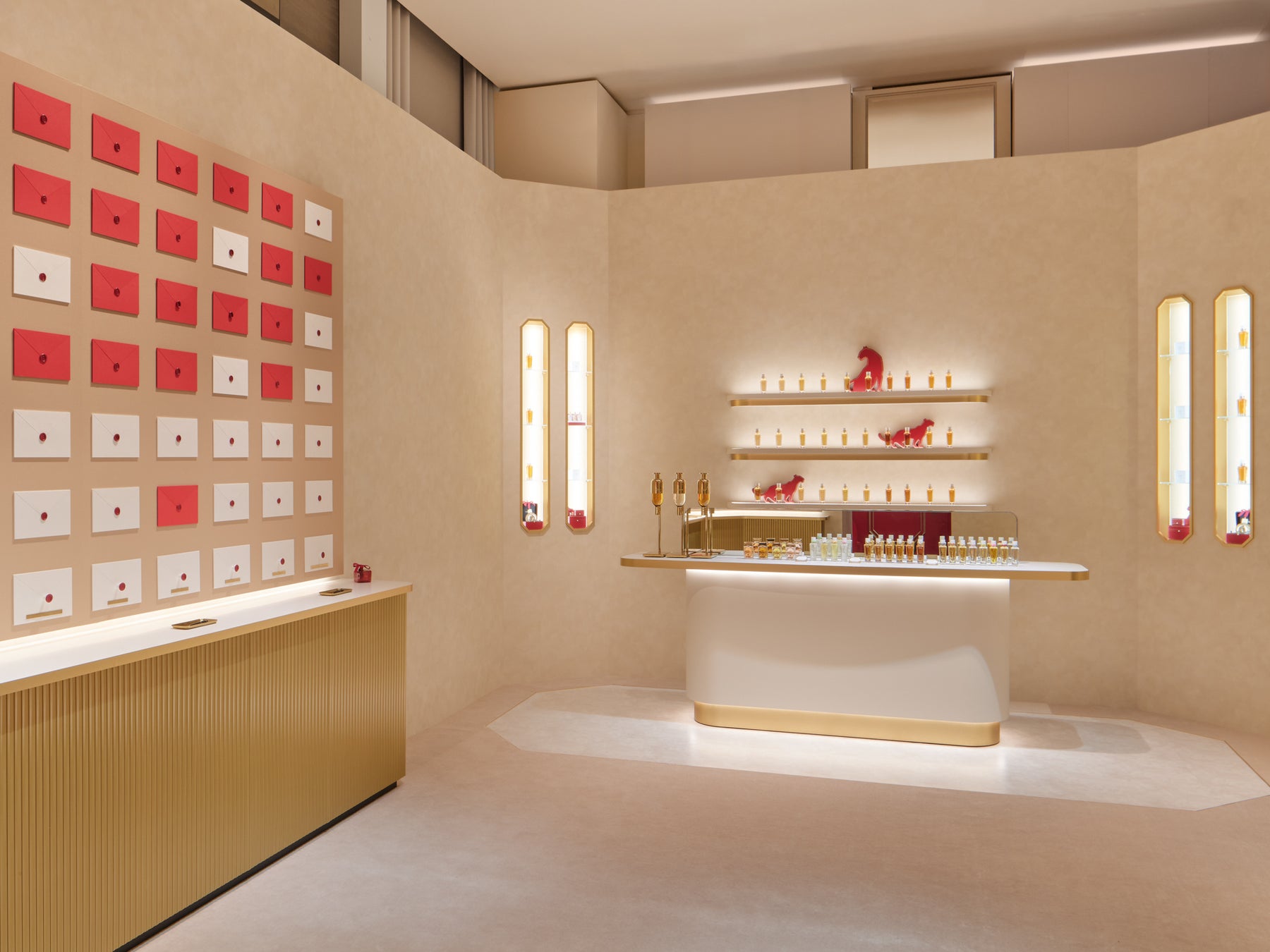 最後のお部屋では、封筒を模した壁一面の引き出しからレッドボックス型のカードを選んでいただき、ご自身のメッセージを添えていただけます。さらに、フレグランスバーに並ぶ20種を超えるフレグランスの中からお好みの香りをまとわせることで、世界にひとつだけの特別なギフトが完成します。また、会場ではベビーパンテールからのデジタルグリーティングカード体験もお楽しみいただけるほか、12月19日(金)からは、来場者限定の先行特典としてメゾン初となるLINEスタンプを会場にてダウンロードしていただけます。