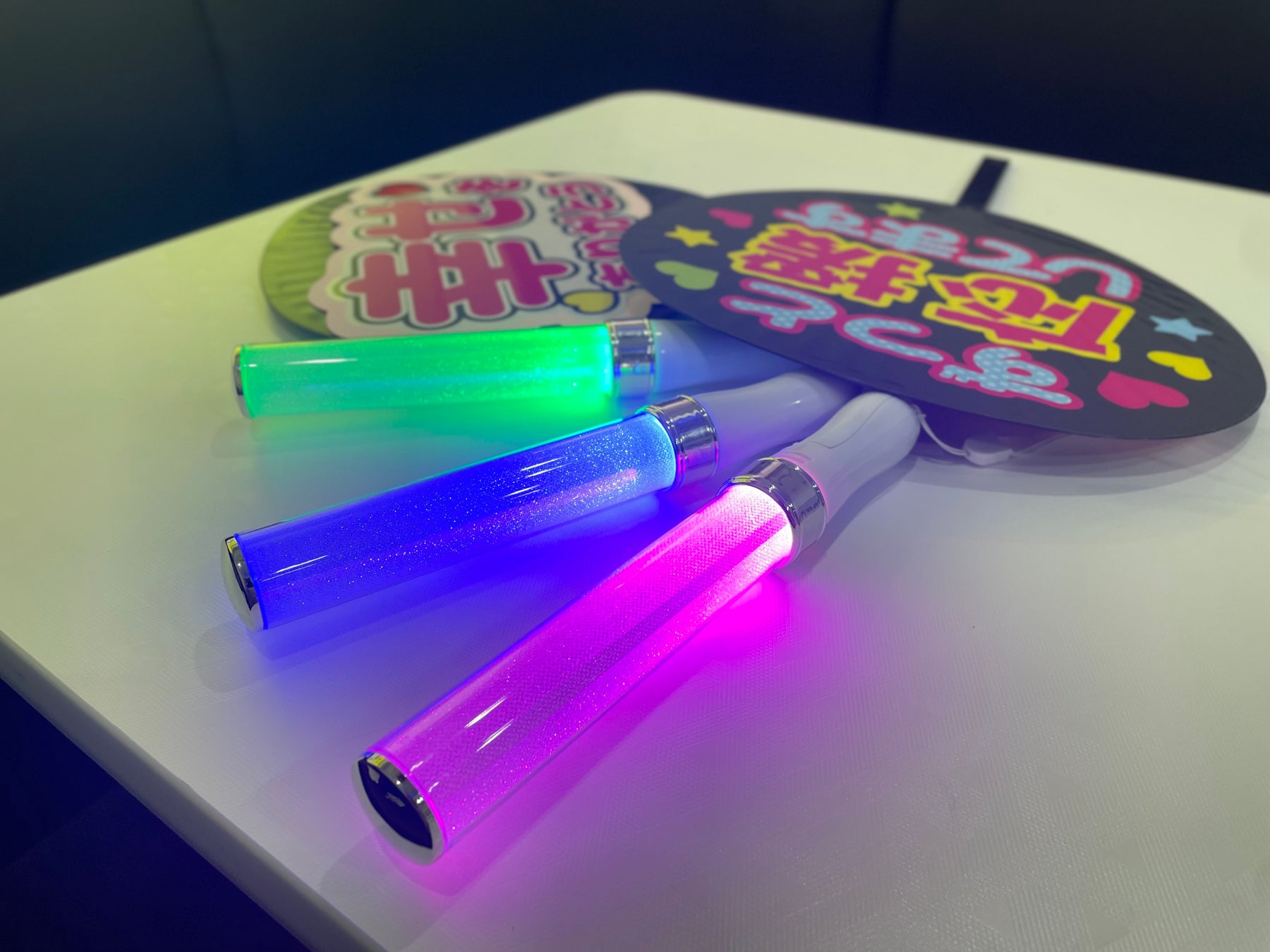 ペンライトや団扇など、お好きな応援グッズを自由に利用できる環境を提供します。ライブ気分をそのままに、リラックスしながら推しの応援を楽しんでください。