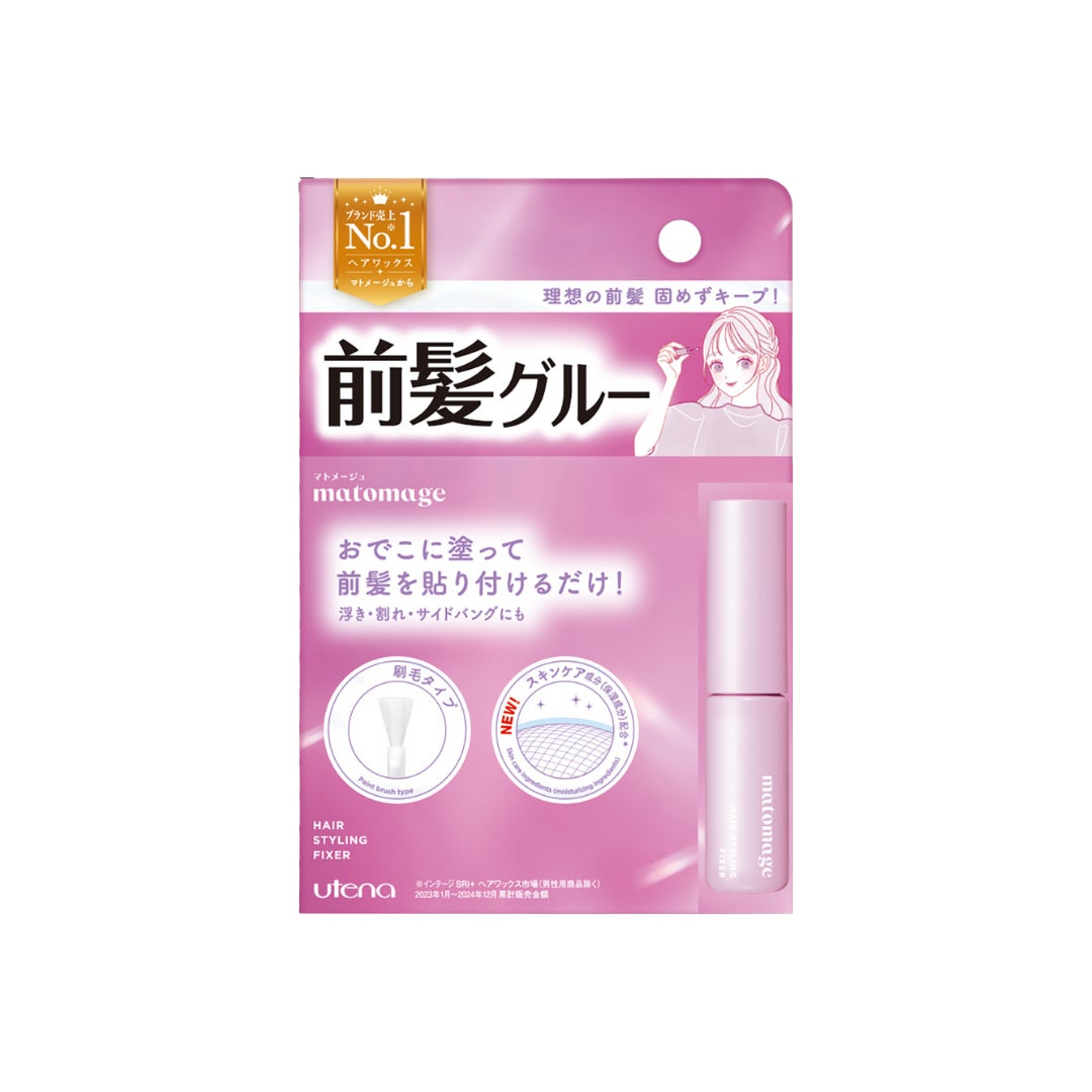 使用方法:前髪をとめたい部分(肌)にグルーを塗布し、乾ききる前に前髪と肌を接着してください。