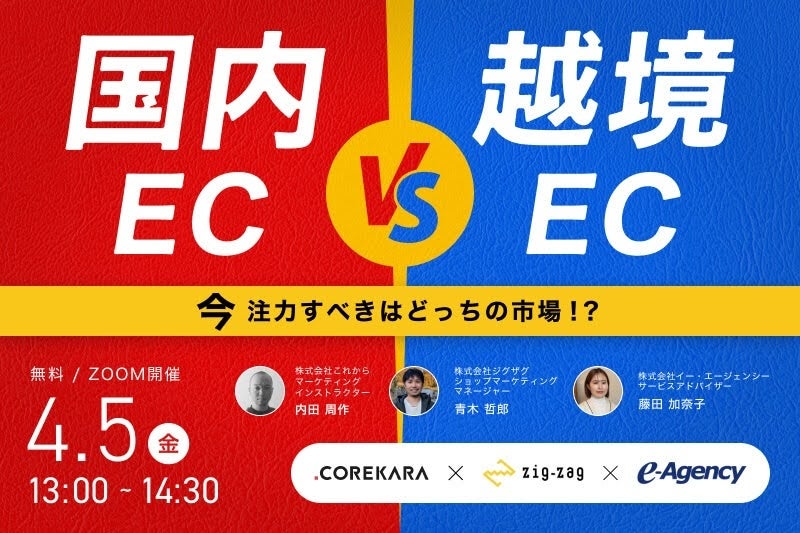 ジグザグ、2024年4月5日(金)「国内EC vs 越境EC ~2024年注力すべきはどっちの市場!?~」をテーマに越境ECに関する無料ウェビナーを開催