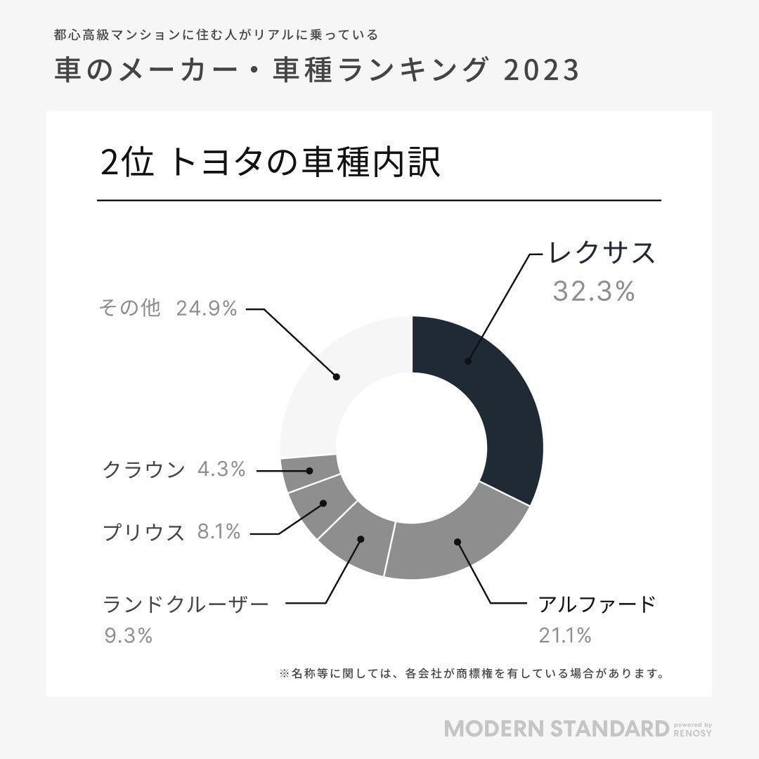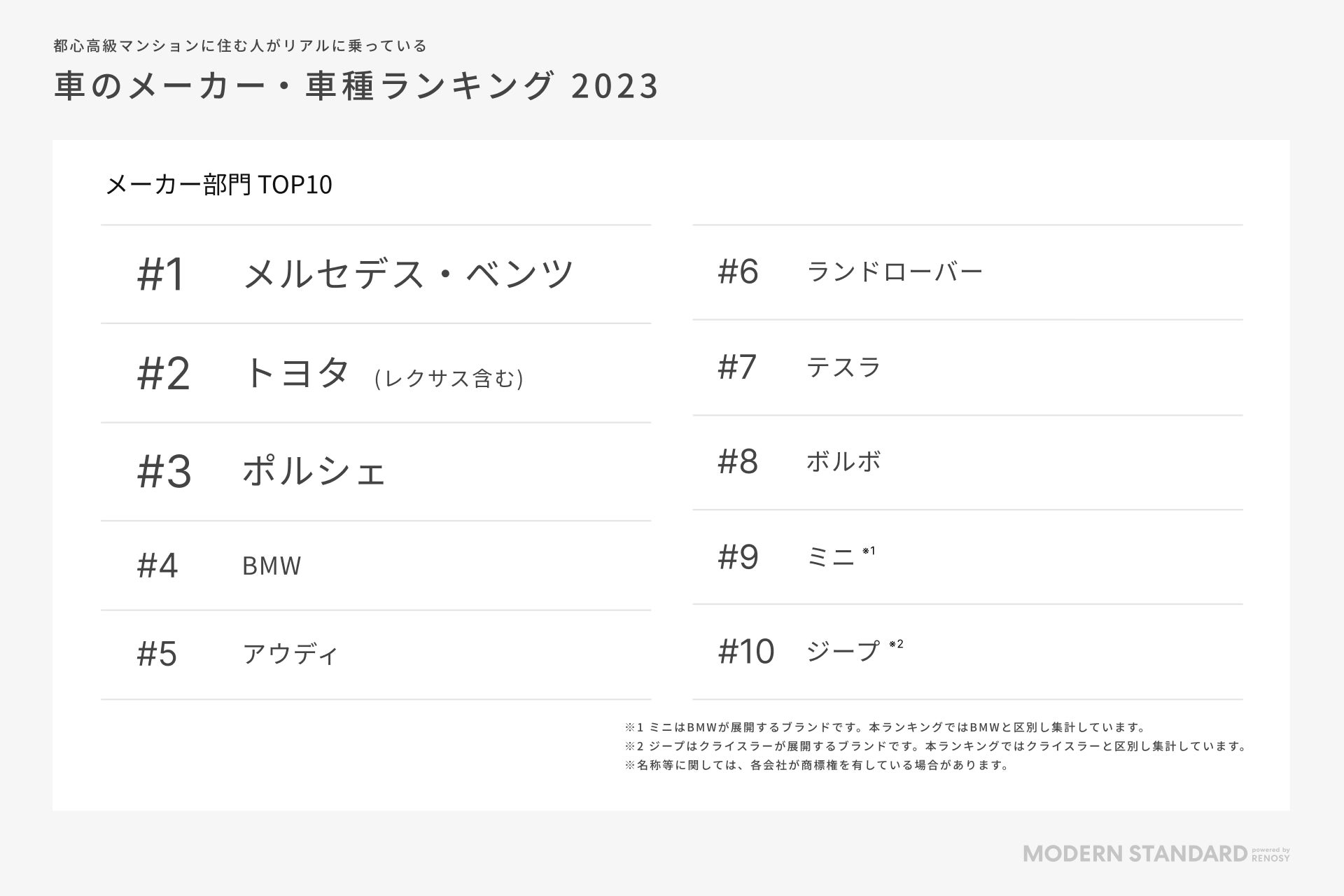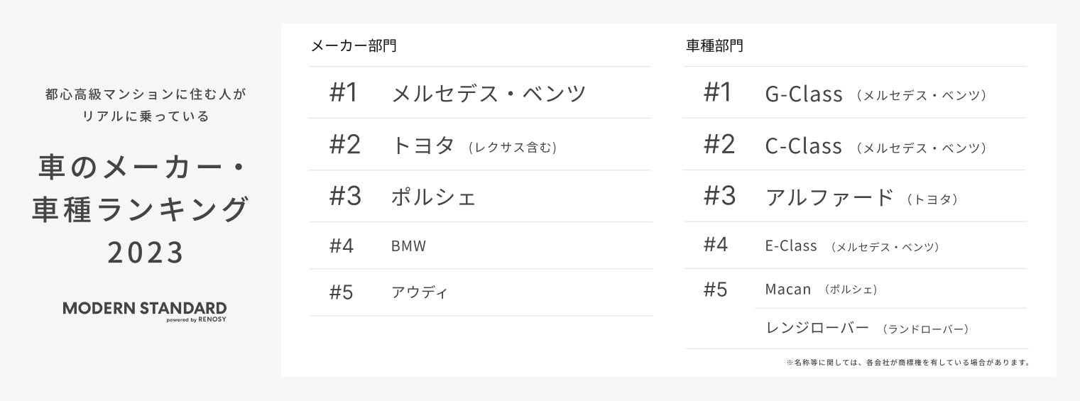 ◆ 都心高級マンションに住む人がリアルに乗っている「車のメーカー・車種ランキング 2023 by Modern Standard」