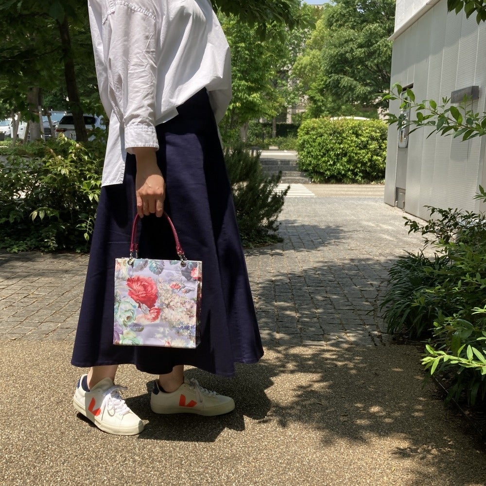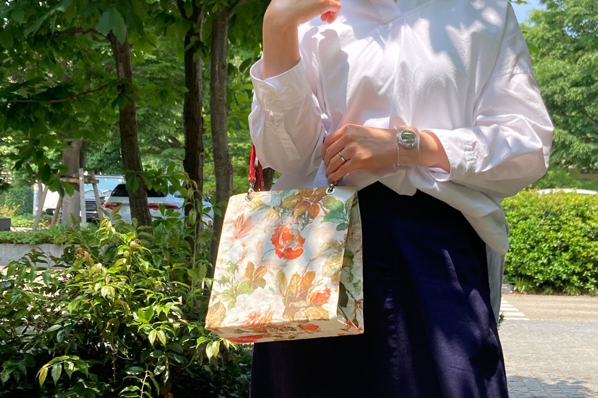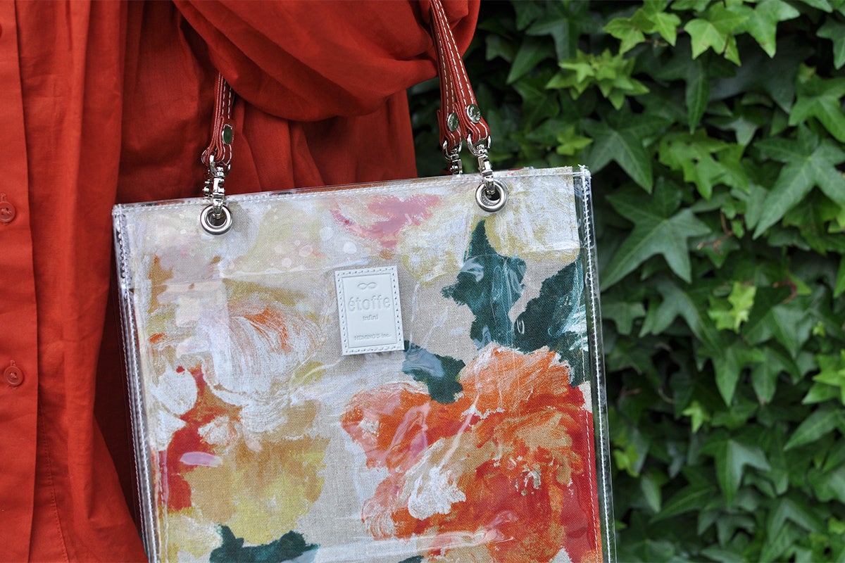 2022年春夏の新作は定番の正方形のétoffe(エトフ)と2wayで使えるétoffe Pochette(エトフポシェット)の2タイプ。本体には服飾用生地だけでなく、クッションやカーテンなどに使われるインテリアテキスタイルも使用しており、豊富なバリエーションを楽しめるのもétoffeの特徴のひとつです。また、専用の透明カバー“clair(クレール)”は、バッグの柄を見せながら、生地の保護、雨や汚れの防止ができるetoffeのカスタマイズアイテム。長く大切にご愛用いただきたい。そんな思いからヘミングスではclairのご使用をお勧めしています。