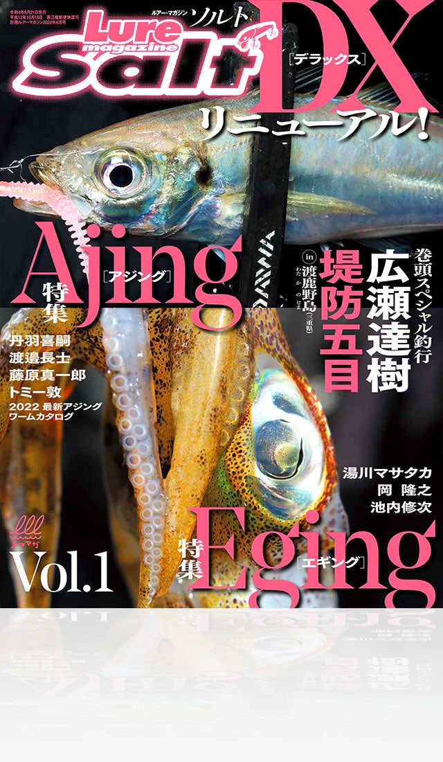 ルアーマガジン・ソルトが不定期刊行で復活! 今年は7月・9月・11月、そして来年は3月にリリースを予定しています! そして、その第一弾となるのが2022年4月21日発売の「ルアーマガジン・ソルトDX Vol.1」。 巻頭企画にはみんな大好きメジャークラフトのヒロセマンが登場。気になる特集企画は、人気の2魚種「アジング」と「エギング」の2本立て! まさに「デラックス」な内容でお届けします!