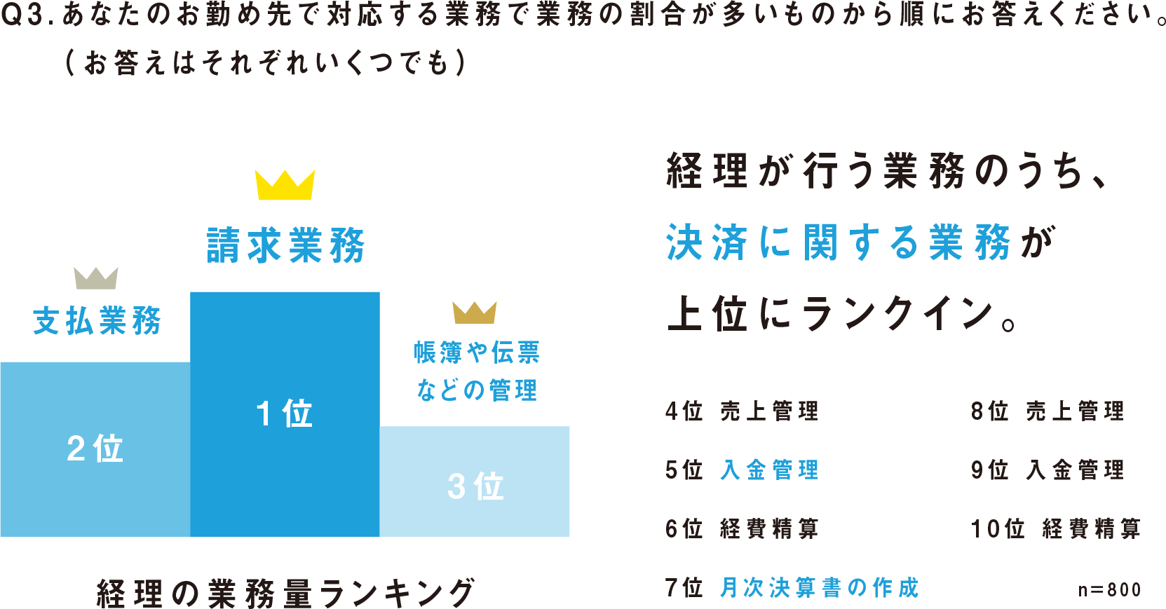 第1位「請求業務」 第2位「支払業務」 第3位「帳簿や伝票などの管理」