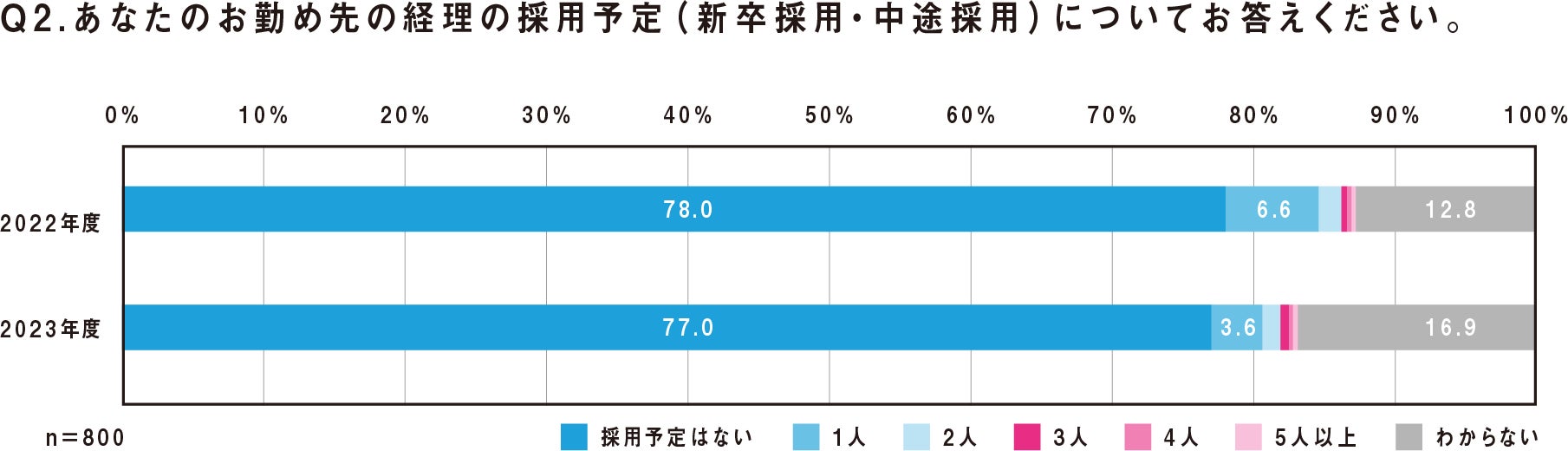 全体の78%が2022年度の経理部の「採用の予定なし」と回答