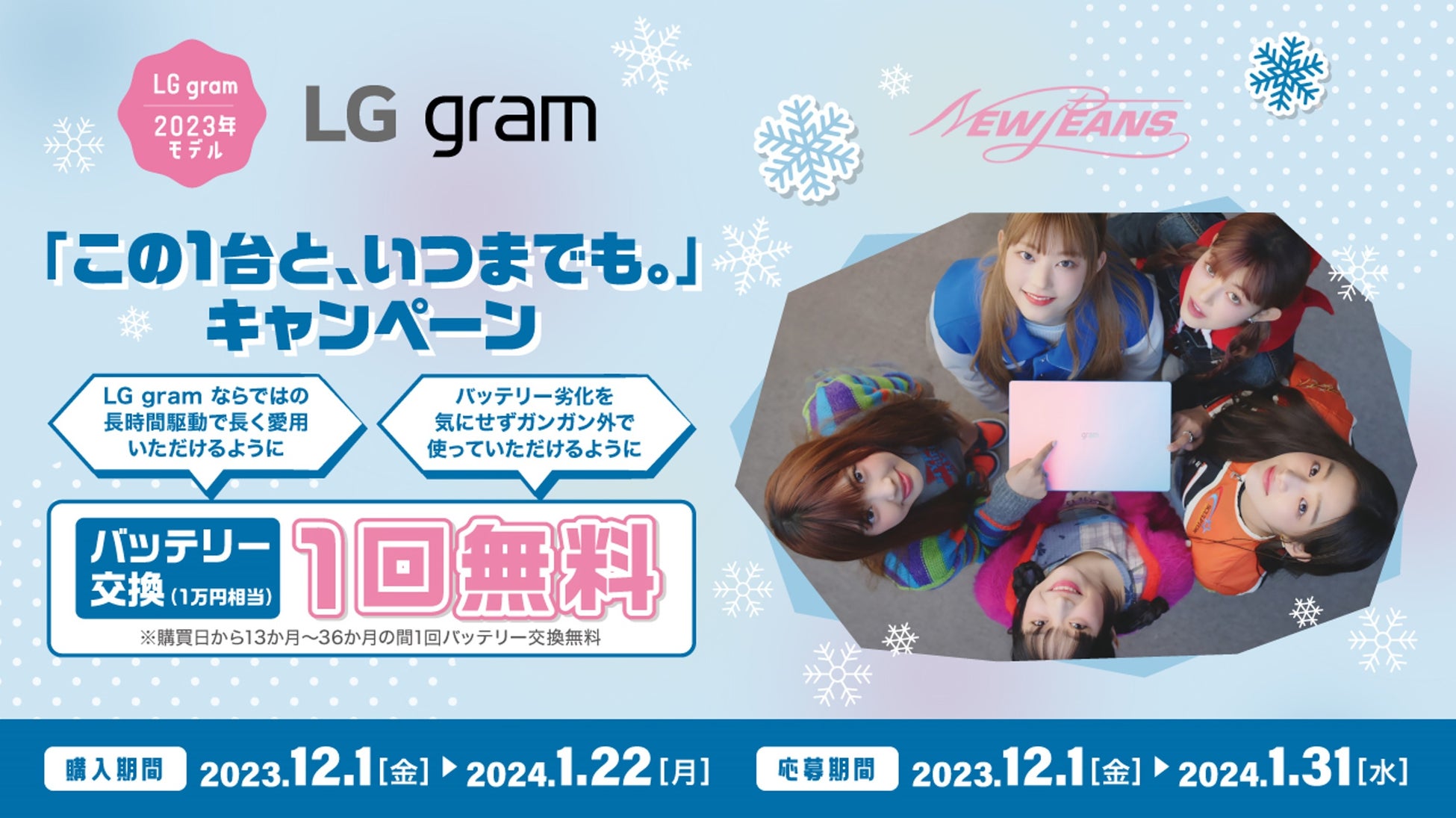 ご購入&レビュー投稿でバッテリー交換1回無料!『LG gram 2023年モデル「この1台と、いつまでも。」キャンペーン』を12月1日(金)より実施