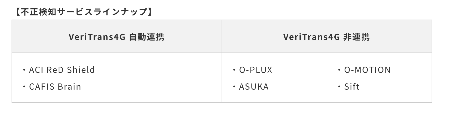 ■「VeriTrans4G」不正検知サービスラインナップについて