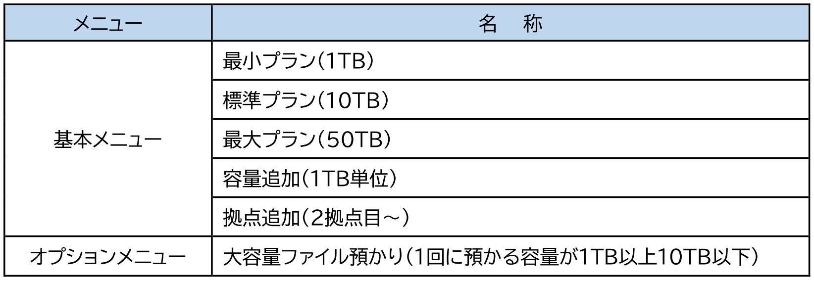 基本メニューは預けるデータの容量により3つのプランを用意していますが、どのプランも、1TB単位で容量追加が可能です。