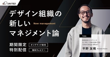 本ウェビナーでは、株式会社ユーザベースにて一体感のあるデザイナー集団「デザイン組織」を牽引する平野友規氏より、「デザイン組織におけるチームづくり施策」「チャレンジマネジメントの方法論」「組織成長のための外部パートナー活用」をお話しいただいています。デザイン組織の責任者やマーケティング担当者はもちろん、デザイナーのマネジメントやデザインリソース管理にお悩みの方、必見の内容となっております。