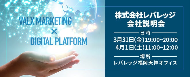フィットネスブランド「VALX(バルクス)」を展開する株式会社レバレッジ(本社:東京都渋谷区、代表取締役:只石昌幸、以下レバレッジ)は、2023年3月31日(金)からの2日間、レバレッジ福岡天神オフィスにて会社説明会を開催することをお知らせいたします。