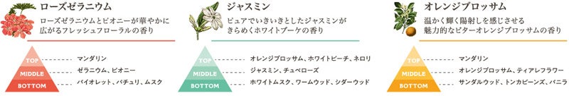 左から ローズゼラニウム、ジャスミン、オレンジブロッサム