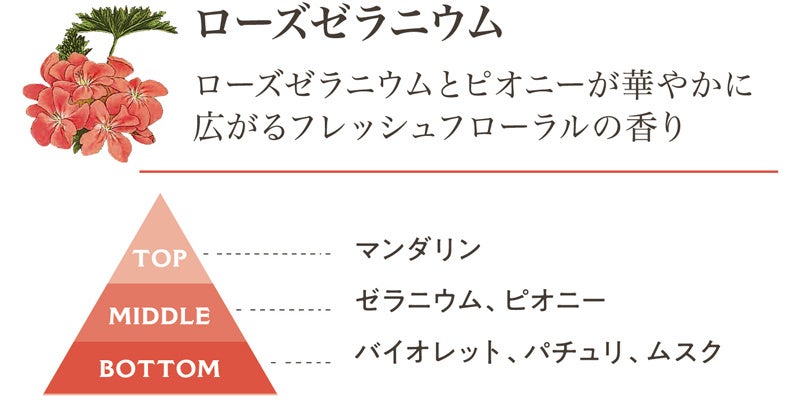 ローズゼラニウム ローズゼラニウムとピオニーが華やかに広がるフレッシュフローラルの香り