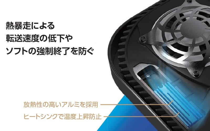 ▲ SSDの熱をアルミ製ヒートシンクで効率的に放熱