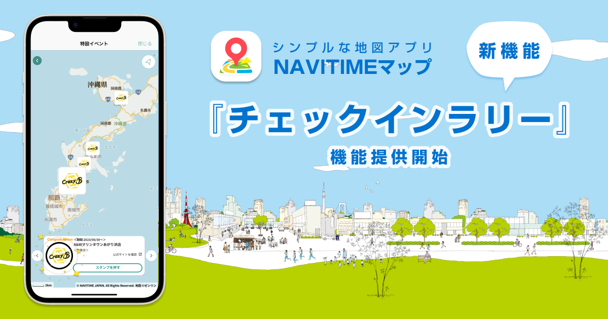 シンプルな地図アプリ『NAVITIMEマップ』「チェックインラリー」機能を提供開始