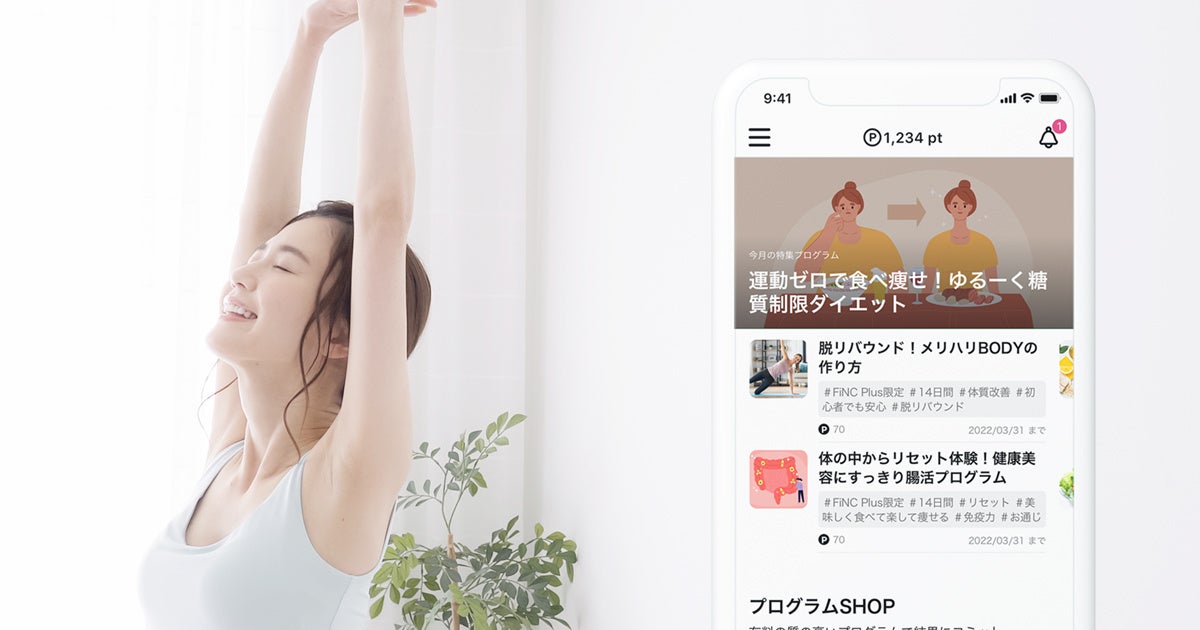 ※一部プログラムは、有料サービスFiNC Plusの限定になります。(FiNC Plusは初回に限り2週間無料)
