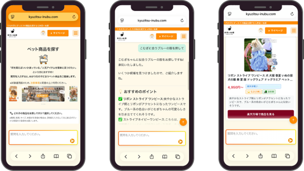 その中で、多くのペットオーナーから共通して寄せられた声が「ECモールに商品が溢れすぎていて、自分の子に本当に合うものがどれかわからない」というものです。膨大な選択肢の中から、体格や年齢、アレルギーなどの個体差に合った最適な一品を見つけ出す手間が、ショッピングの負担となっている現状がありました。 このようなペットオーナーの悩みを解決し、独自のペットデータに基づいた「パーソナライズされた購買体験」を実現するため、「休日いぬ部」は、AIによる対話型の商品提案サービスを開発するに至りました。